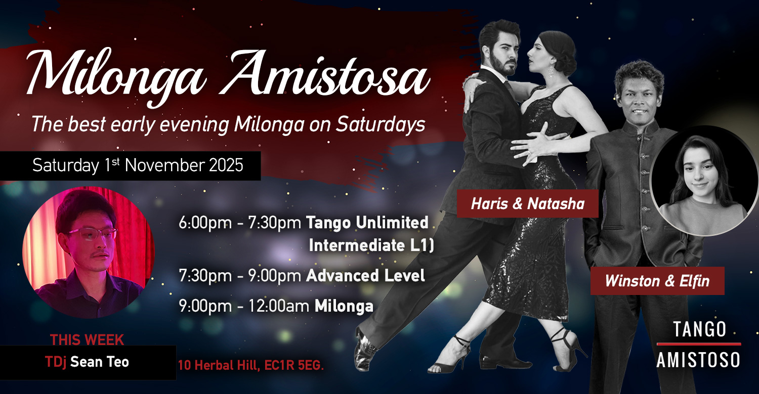 | Tango Unlimited & Advanced 2 Classes Package | Saturday , 01-Nov-2025 | 6.15pm to 9pm | Angel/Islington Lower Hall | £30.00 | |