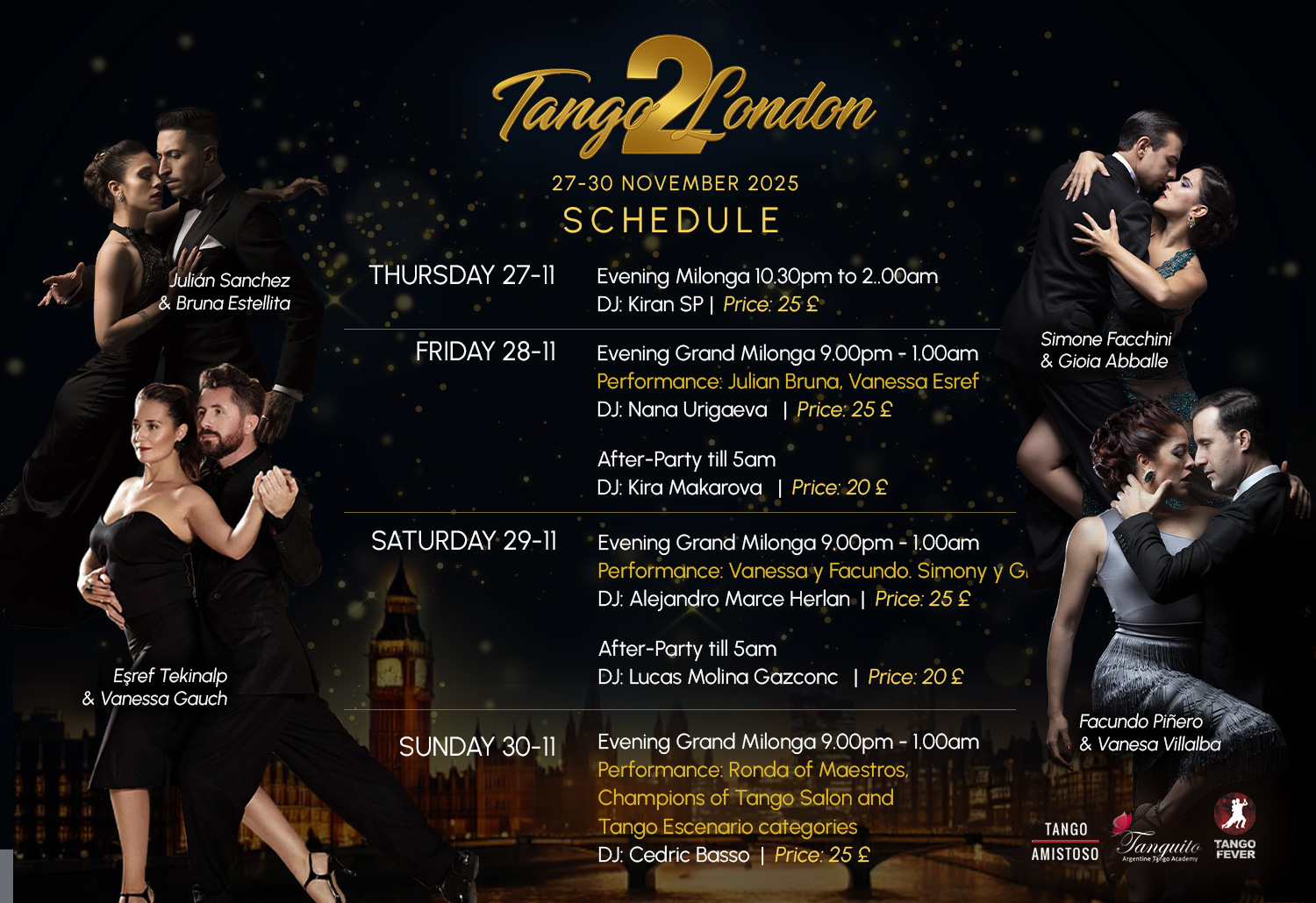 Today's Milonga Amistosa is cancelled because of the special Tango2London festival happening. Please check www.tangotolondon.com for all details.