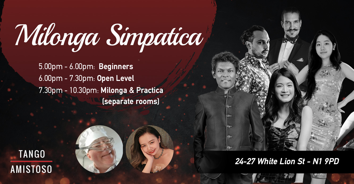 Milonga Simpatica is a friendly Milonga run by Tango Amistoso in London every Sunday. The Milonga is run with a real community spirit where we, as a community, work hard to create a warm, friendly and welcoming environment.
